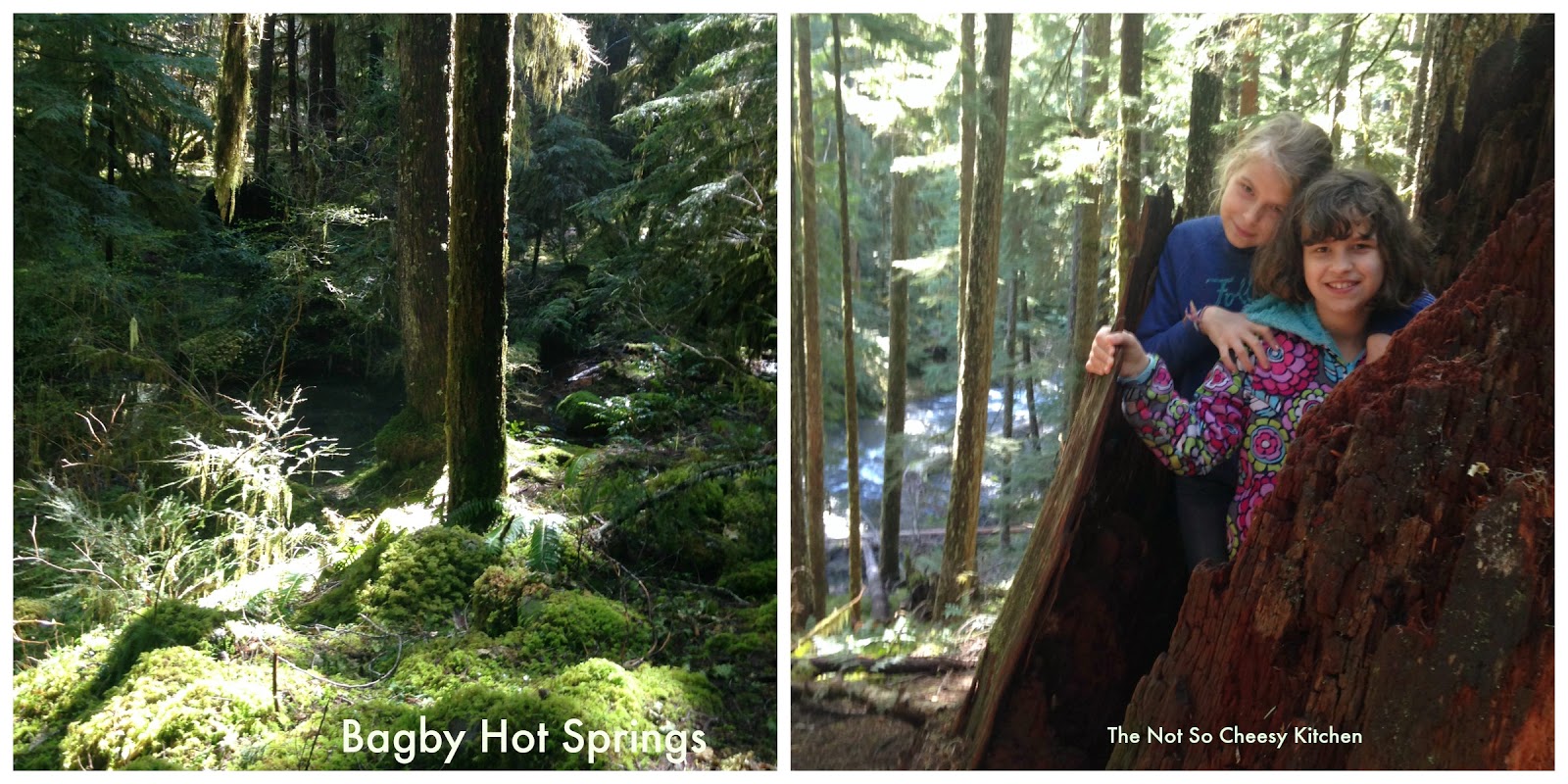 We have finally made it out to Bagby Hot Springs out in the Mt. Hood National Forest This has been on my wish list in forever. By the time I think about it is usually is already quite late in day, and then there is also the little piece of distance. Now this beauty - depending on your threshold of time spent in the car - is a drive but oh, so totally absolutely worth it and I am not a hot tub fan. Well, of course this is no hot tub but a hot spring brining absolute mind clearing serenity. It is in the middle of the woods, it is a tiny hike about 1-1/2 miles which non-surpisingly still brought on the "When are we finally question - but oh, my. The trail to the Hot Springs is already magical; green in any variety dark, light, the sound of a river as the trail leads up along a river. It is easy to imagine it as fairy land.