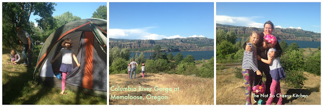 Summer is here meaning the tent camping season is now fully open {for us} - we kicked off the season with a two night stay at Memaloose Oregon State Park; actually the same campground we kicked the season off for a few years now. Memaloose State Park is in the Columbia River Gorge just past Mosier and few miles west of The Dalles; this is the place - at least we think so - where the lush green changes over to a more desert feel. The mighty Columbia is just below the campground and Rowena Crest rises high above; Memaloose is located where the gorge is super narrow. The train line is below the campground separating the river from the park; I-84 runs right above campground and Rowena Crest towers above. Yes, it is loud - there is the highway, trains all times of day and night, and - since this is the Columbia River Gorge - one the premier wind/kite surfing places around the world super, duper windy. WE - for some odd reason - love to kick off the season here. It is always a lot warmer, and drier than Portland plus there is a lot to do.