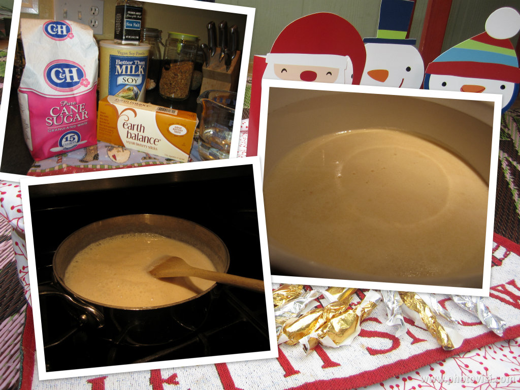 I first figured out how to make Vegan Condensed Milk {thank you, VeganWolf} - and it worked out perfect. Yes, it is very yummy - certainly not a low calorie type of food but we are making caramels.